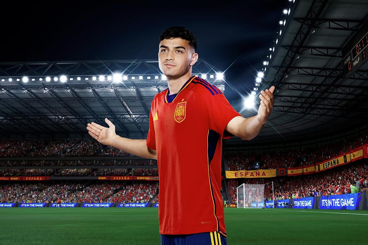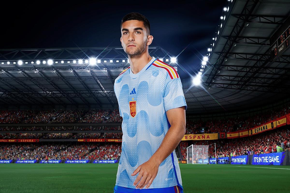 主場球衣延續經典紅色系,背後所代表的是西班牙民族的熱情,領口和球衣側邊為西班牙國旗的紅黃配色,客場球衣以天空藍為主色,上面的動感幾何圖形,是來自1982年西班牙舉辦比賽時所設計的徽章圖案。