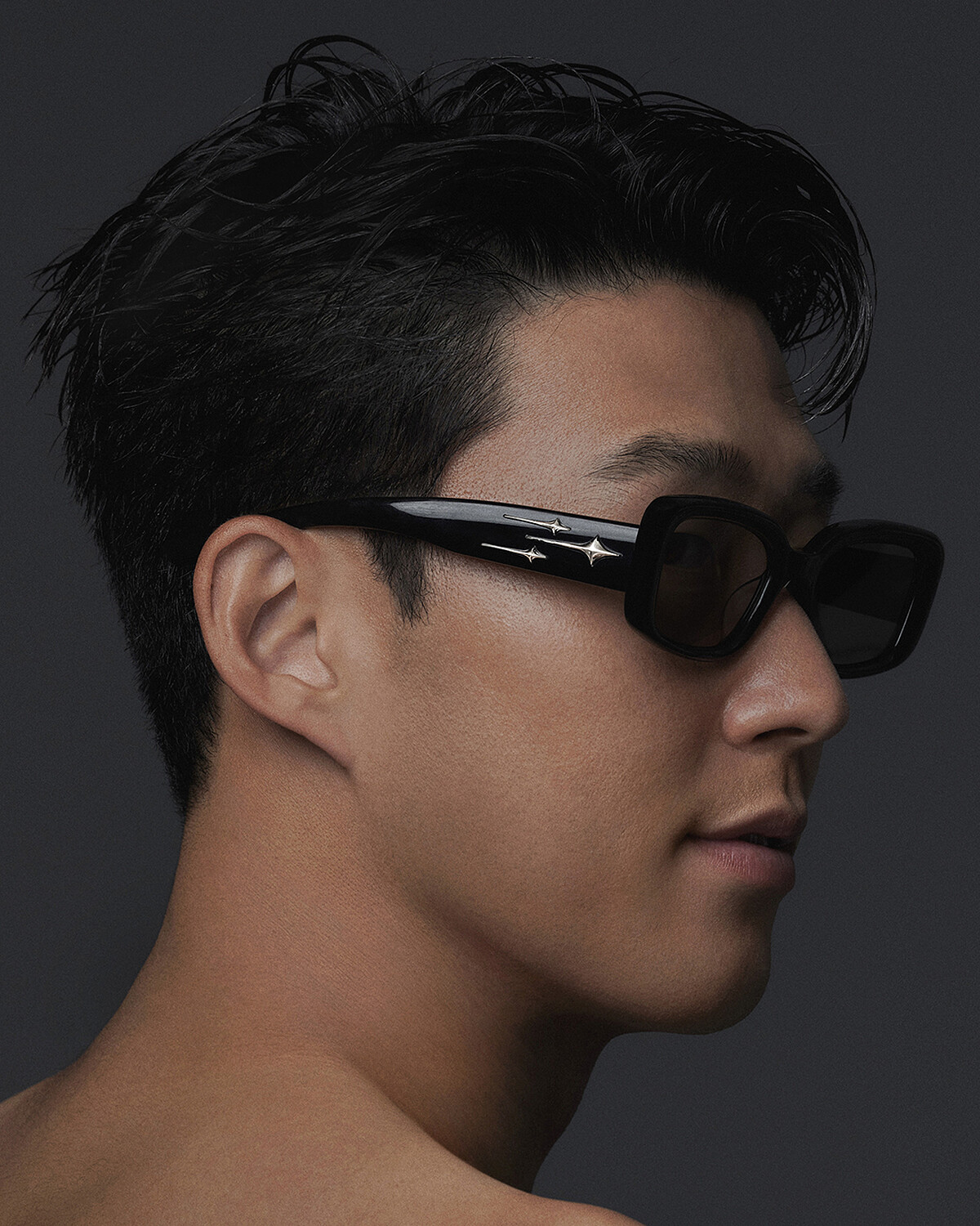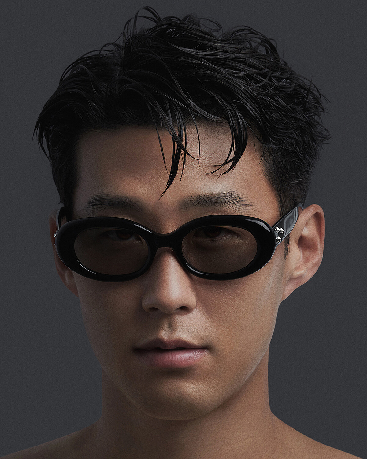 不同於球場上的陽光形象,孫興慜換上黑色長版大衣、高領針織毛衣、皮革長褲和黑色長靴,展現出帥氣、高冷又雅痞的樣貌,就像是韓劇中黑化的男神,並演繹ANTENA-01和EVE-01共兩款太陽眼鏡。