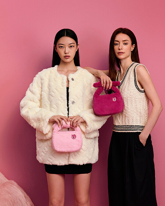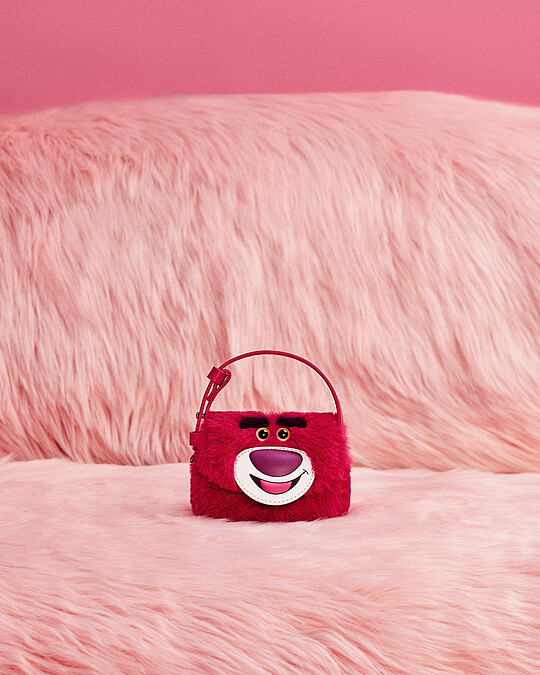 把熊抱哥直接變成包款造型,搭配柔軟的草莓粉絨毛,是冬日上街最亮點的單品。