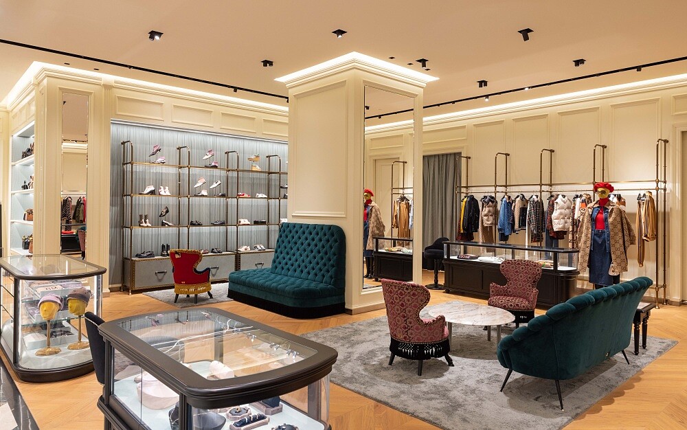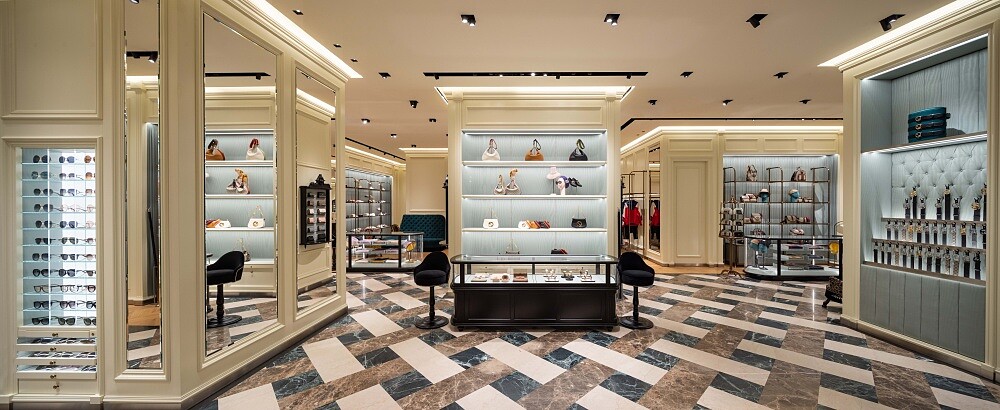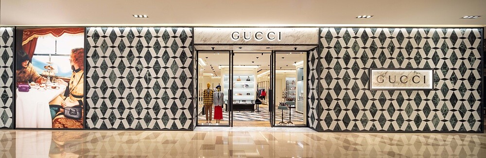 新開幕的Gucci板橋大遠百專門店結合傳統和現代美學,承襲品牌復古又浪漫的品牌基因,運用奢華大理石材質打造外牆和牆面,並呈現出立體3D效果。店內擺放精緻木製傢俱、華麗天鵝絨扶手椅和絕美地毯,營造出舒適的購物空間。