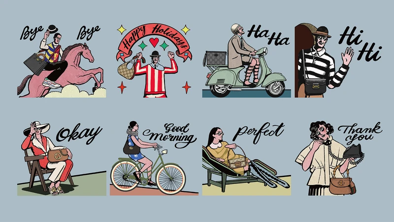 Gucci 2022歲末動態貼圖免費下載,復古插畫演繹義式摩登情懷(附載點