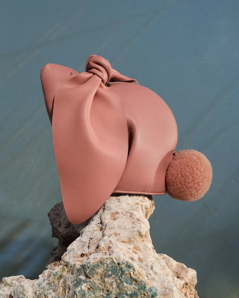 應景農曆的兔年,Loewe承襲品牌170年的皮革工藝,將柔軟納帕皮革縫製成立體動物包款,以傳統繩結設計為靈感,結合兔子長耳造型和俏皮剪羊毛尾巴,打造成兔年限定Bunny包,包括蜜桃粉、鵝黃色、冷灰色。另外,Loewe特別邀請品牌大使湯唯拍攝的兔年形象照,當中出現一款灰色毛絨絨包款,就像把真的把萌兔背在身上,是今年不可錯過的限量包款。