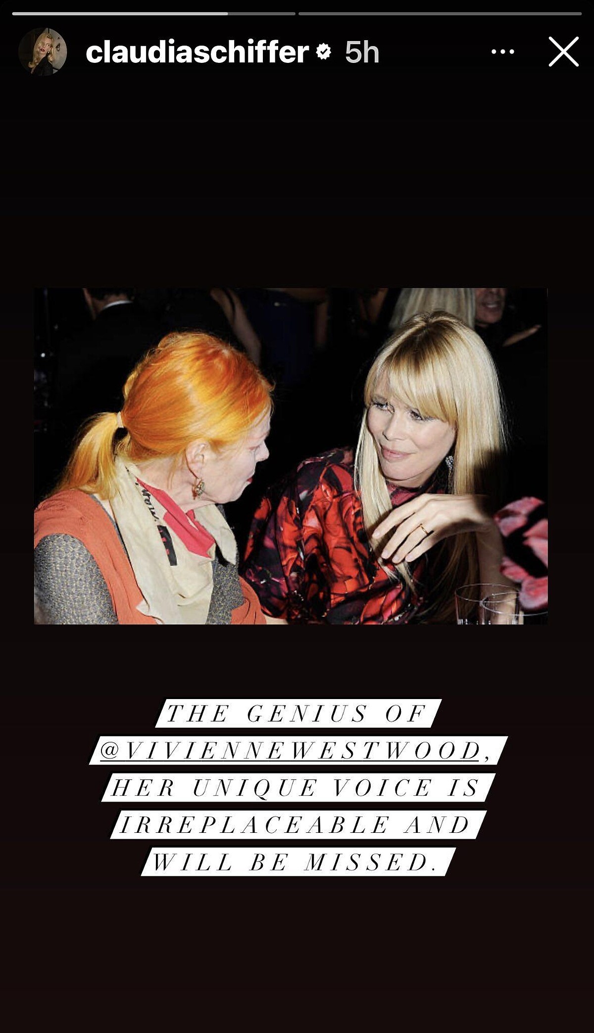 從我第一天認識你直到最後一次見面,你教會我笑、聆聽、學習而且比以往更懂得愛。我永遠感激旋轉在你的軌道上,對我來說,不論是時尚還是人性話題,你,Vivienne,都像是暖陽一般的存在。