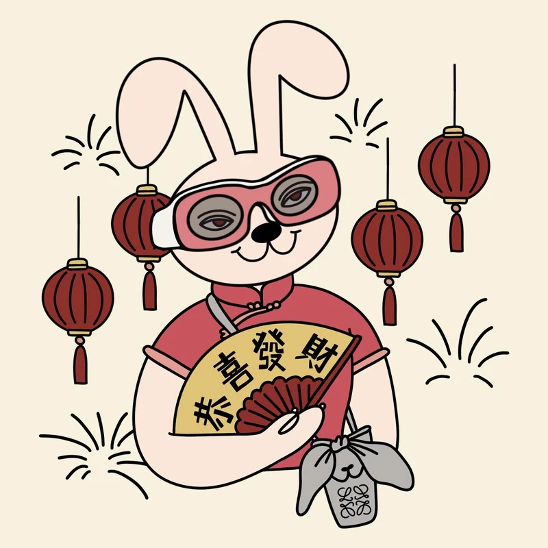 除了Bunny身上顯而易見的Loewe logo和方形太陽眼鏡,值得一提的是,Bunny身上所背的包款正是Loewe兔年最新推出的春節包款,結合日常問候用語,新年過後也可以再用一段時間。