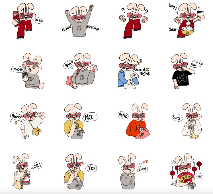 找上台灣插畫家Eszter Chen合作,以「Bunny兔子」為主題來呼應兔年背景,童趣的筆觸與繽紛的色彩,拜年問候看起來格外討喜。