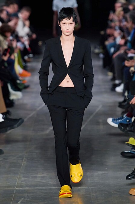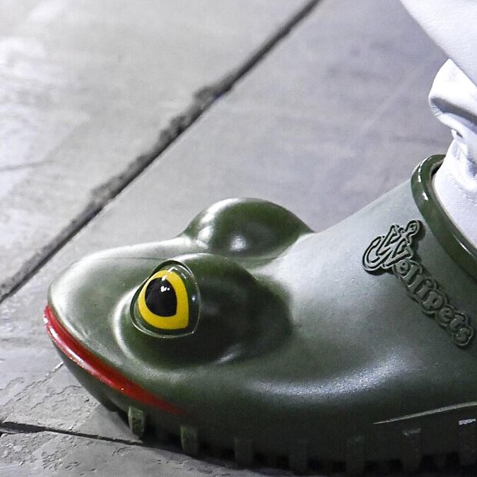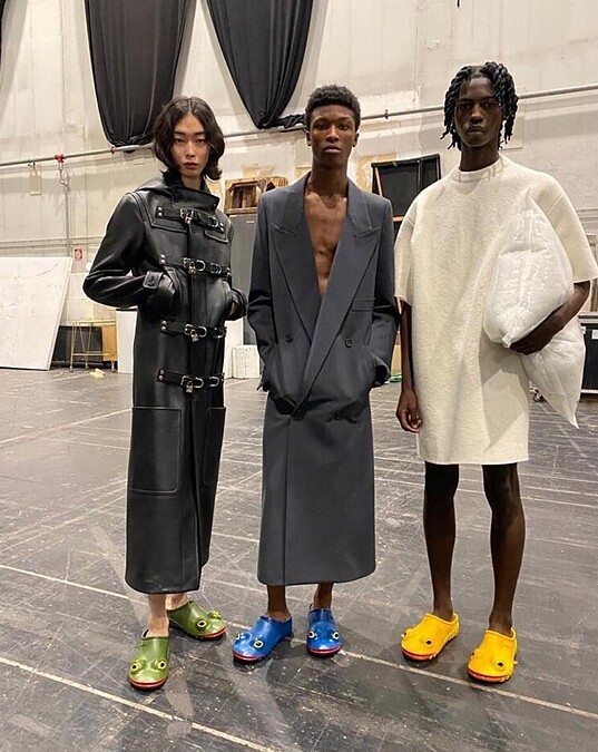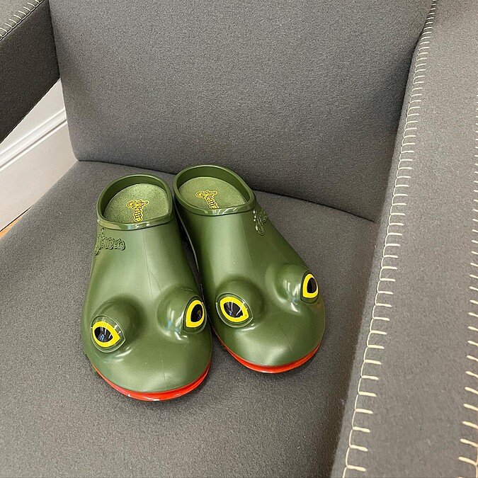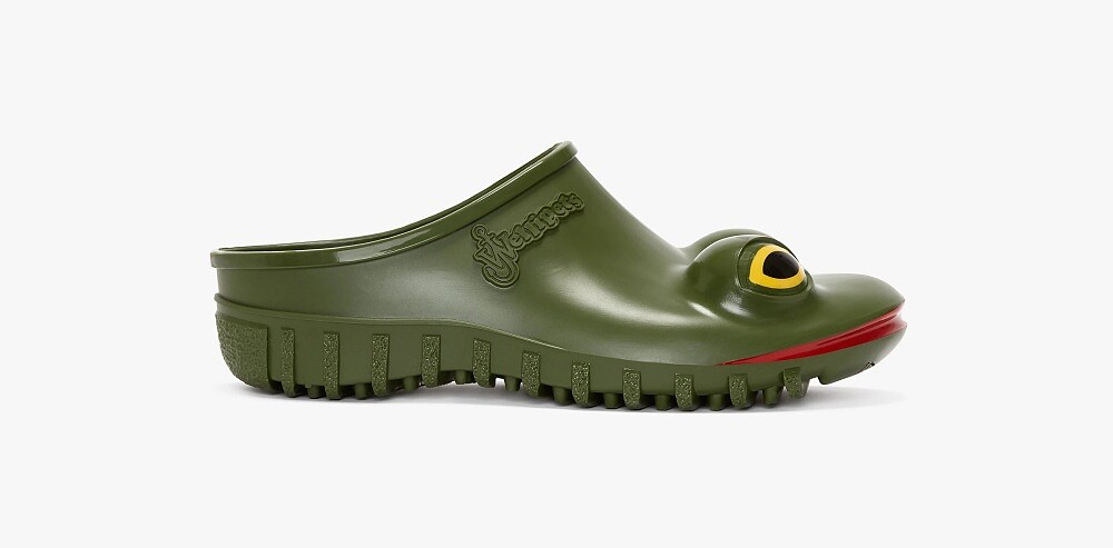 農曆年前登場的2023秋冬男裝週,在設計金童Jonathan Anderson創立的JW Anderson秀上,出現一雙雙繽紛青蛙鞋,炯炯有神的大眼、鮮豔的紅唇,加上飽和的色彩,不仔細看還以為模特兒踩的是真的青蛙,而這雙鞋也成為2023秋冬男裝週最具討論度的亮點單品。