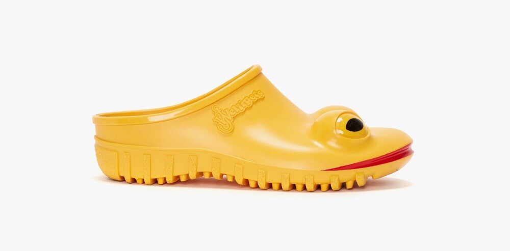 JW Anderson推出的青蛙鞋以光滑橡膠材質打造而成,鞋面上除了有青蛙造型,還加入JW Anderson標誌,推出綠色、黃色和藍色的選擇,由於是方便穿脫的拖鞋,相信不少懶人們已經準備要購入,只不過目前尚未正式開賣,心儀這雙青蛙鞋的時尚迷還得再等等。