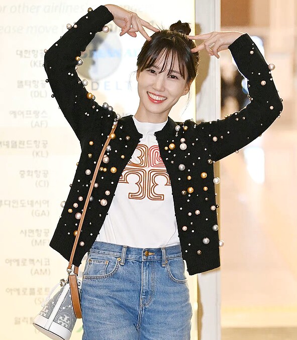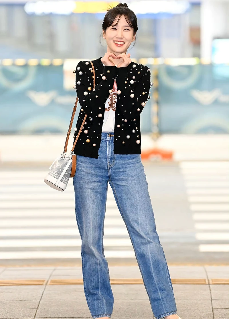 韓劇《非常律師》女主角朴恩斌,受邀出席Tory Burch 2023秋冬系列大秀,歐膩現身仁川機場時,以Tory Burch Logo白色上衣和牛仔褲,搭配黑色珠飾針織衫,營造出青春活力的樣貌。
