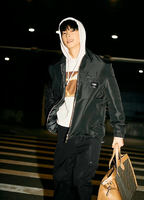 許光漢搭乘凌晨的航班,要飛往義大利米蘭參加Fendi 2023秋冬系列大秀,以Fendi白色帽Tee搭配黑色夾克外套,展現大男孩的青春活力,期待光漢接下來的看秀穿搭。