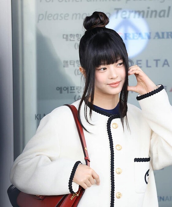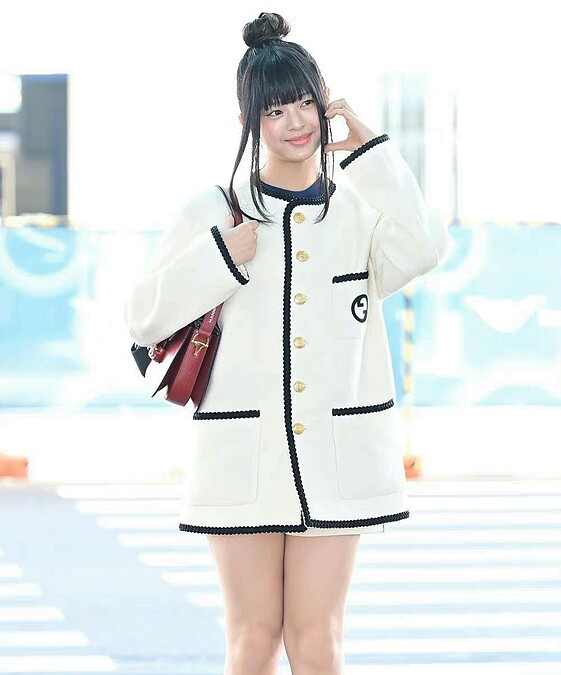 NewJeans當中首位被簽下,成為Gucci品牌大使的Hanni,踏上人生第一個時裝週之旅,以Gucci復古白夾克,搭配經典手袋Horsebit 1955,正在前往米蘭時裝週路上。