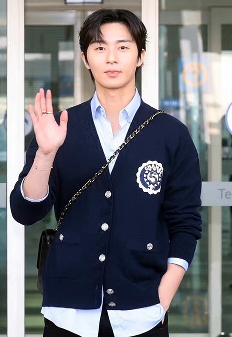 提早Jennie一天出發的朴敘俊,將在香奈兒2023秋冬大秀與大家相見歡,從韓國出發時,歐巴除了背上Chanel經典小香包,還穿著海軍藍針織外套,他是繼GD歐巴後,可以完美駕馭小香外套的男生。