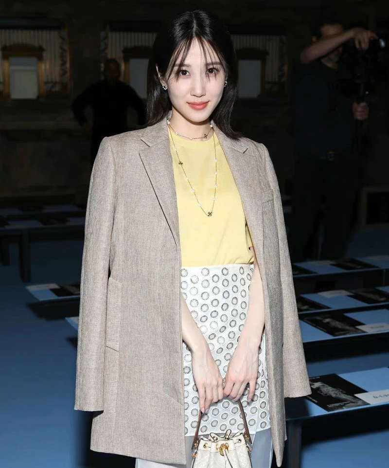 來到Prada秀場,Somi一改機場時的個性風,換上幹練的西裝外套和連身裙,而這件連身裙也藏有巧思,露出Somi一整片美背,全場性感女神非她莫屬。