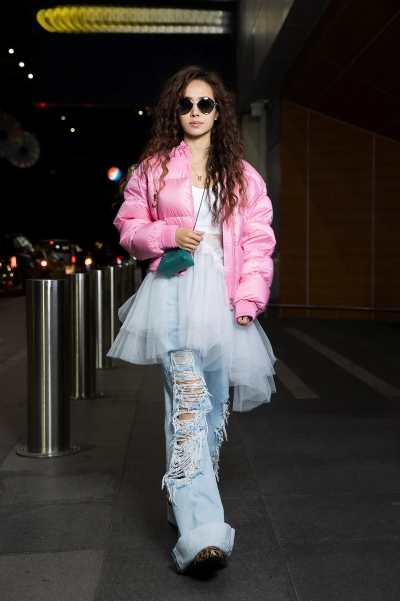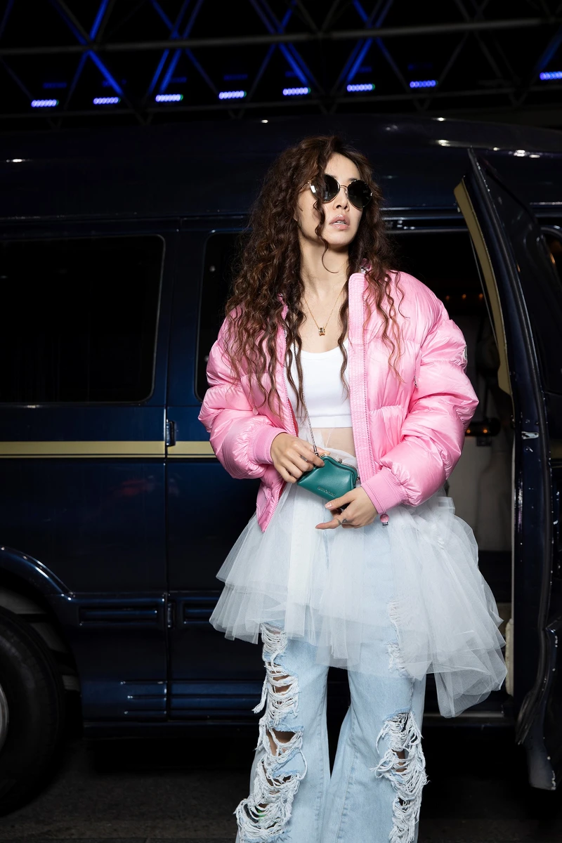 正當你我在跟周公下棋的時候,呸姐悄悄現身機場準備前往參加米蘭時裝週,不愧是時尚女王,蔡依林白色背心和刷破牛仔褲外,加上一件白色紗裙點綴,最後套上粉色羽絨衣為整體造型增加一抹亮點,是不是看起來又火辣又甜美。