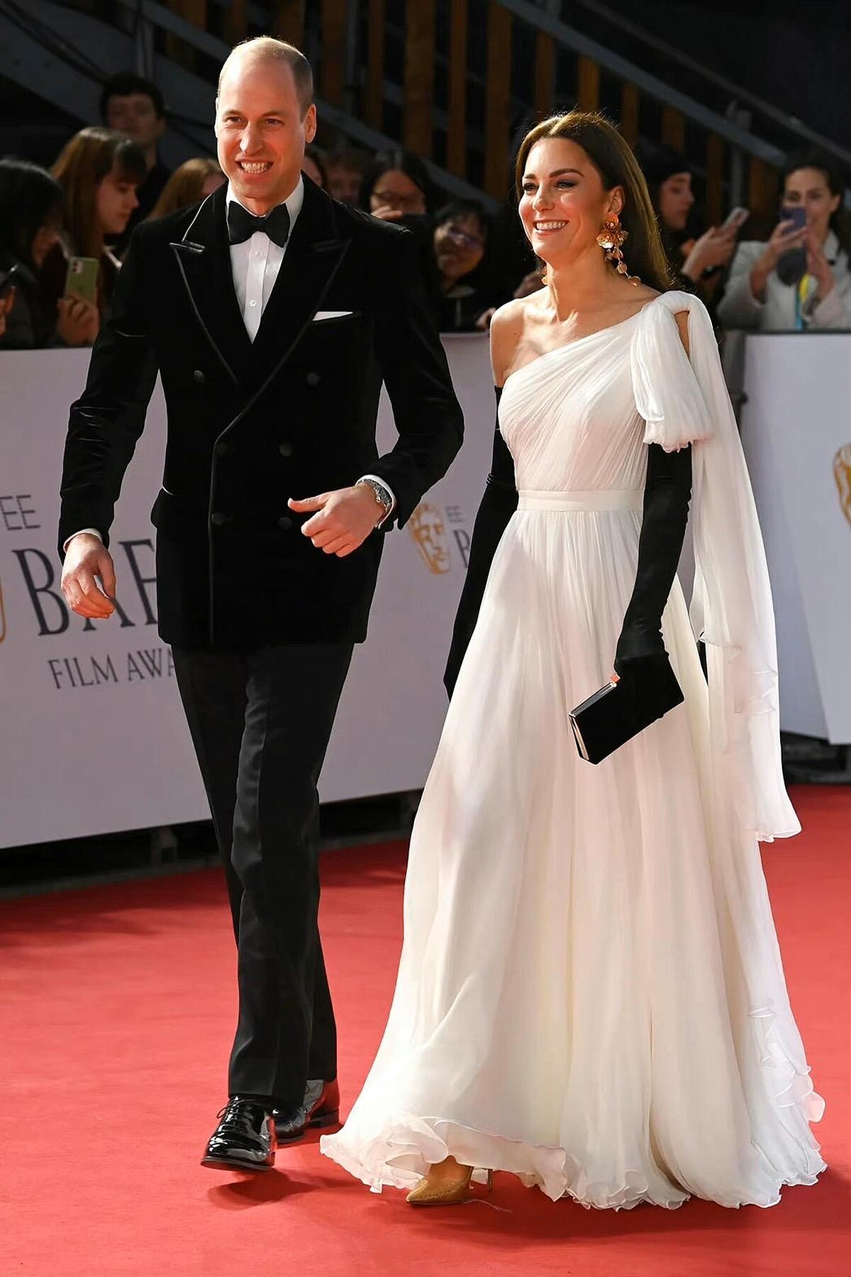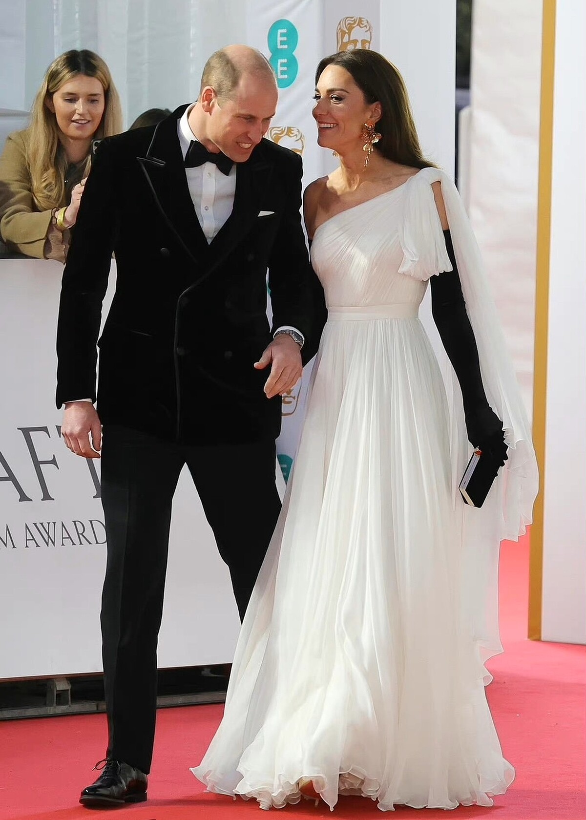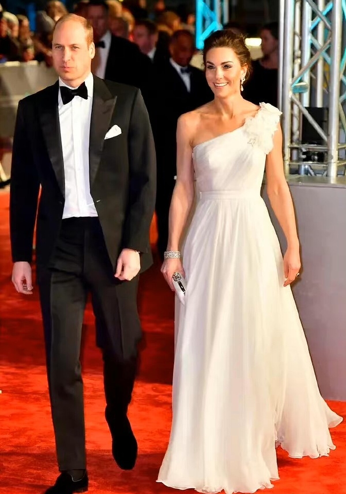 每每亮相總能引發話題的英國皇室成員凱特王妃,最新和老公威廉王子出席英國電影學院獎頒獎典禮(BAFTA)再度成為全球媒體的焦點,除了兩人經典的黑白配紅毯造型之外,凱特王妃選擇的白色禮服和首飾也藏有巧思,這就帶你來看,凱特王妃的紅毯造型細節: