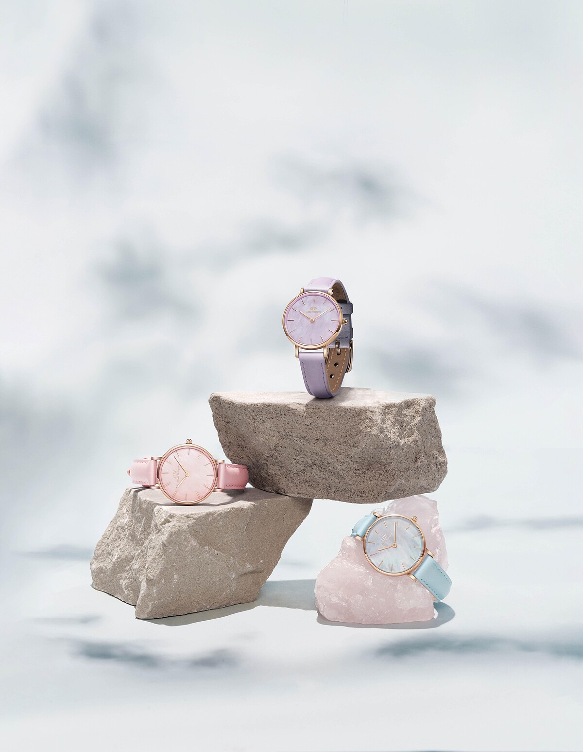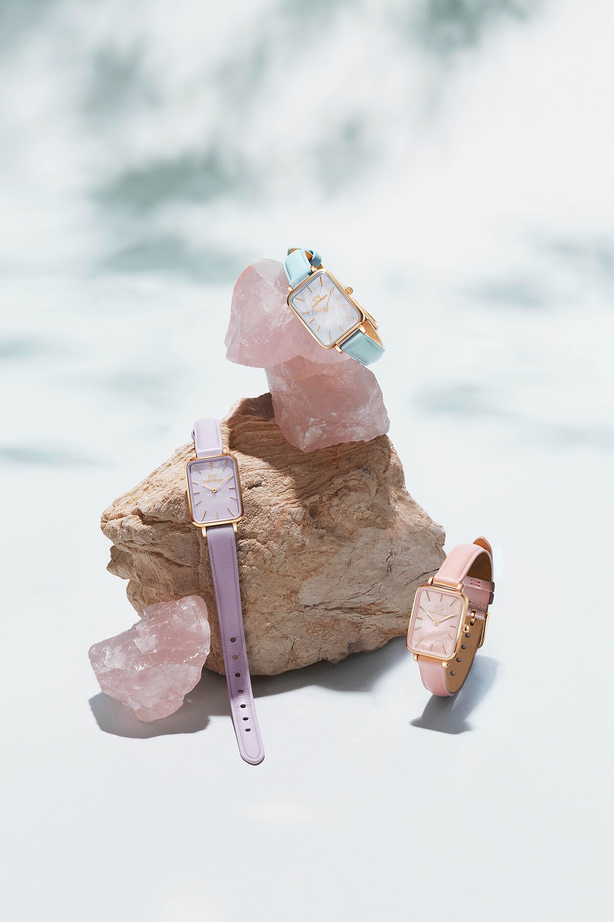 每到春天就會聯想到櫻花,DW以粉嫩櫻花粉注入Petite圓型腕錶28mm、Quadro方型腕錶20x26mm。