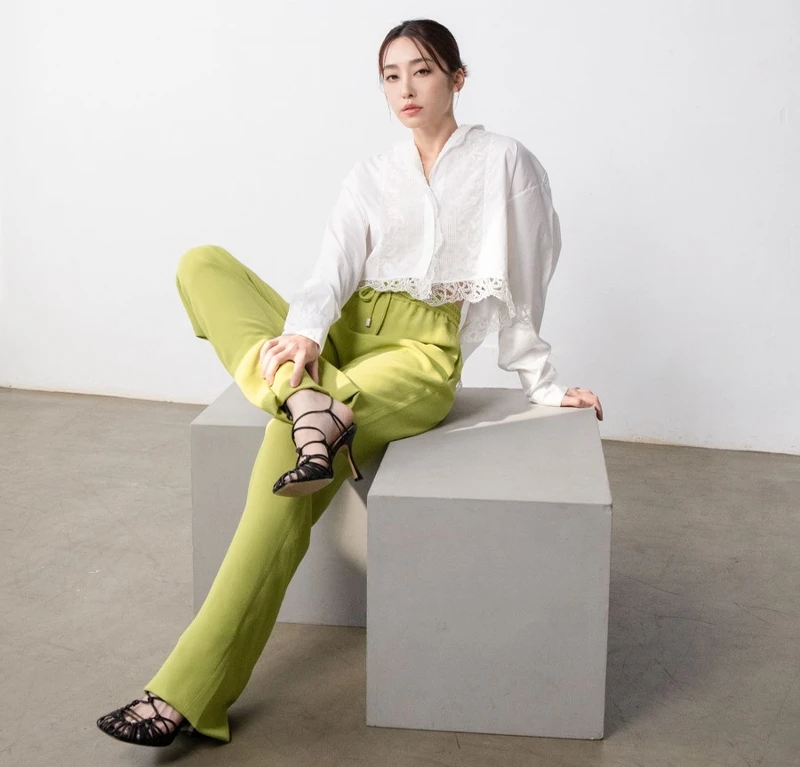 襯衫X西裝褲在ERMANNO SCERVINO的巧思之下,分別以拼接蕾絲的寬鬆短版型態、彈性束口設計帶出運動時尚感的西裝褲呈現,搭配上繫帶高跟鞋,義式摩登的舒適自在風格,更顯出跳脫標籤制約的自信強大姿態。