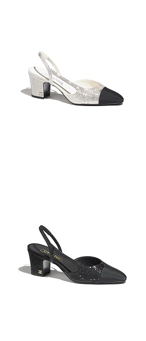 雙色鞋相信是不少鞋奴畢生必收的一款夢幻鞋款,經典的黑白配色換上波光粼粼水晶樣式,有平底、低跟等不同高度的鞋款供選擇。