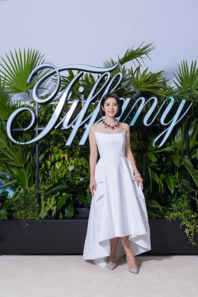 有名廚江振誠親自操刀的晚宴為Tiffany高級珠寶展揭開序幕之外,Tiffany還邀請到玉女接班人之稱的楊采妮出席,穿著白色緞面禮服的她,集奢華、優雅、氣質於一身,在她身上還佩戴此次Tiffany高級珠寶展的亮點作品紅碧璽與祖母綠花型設計項鍊。