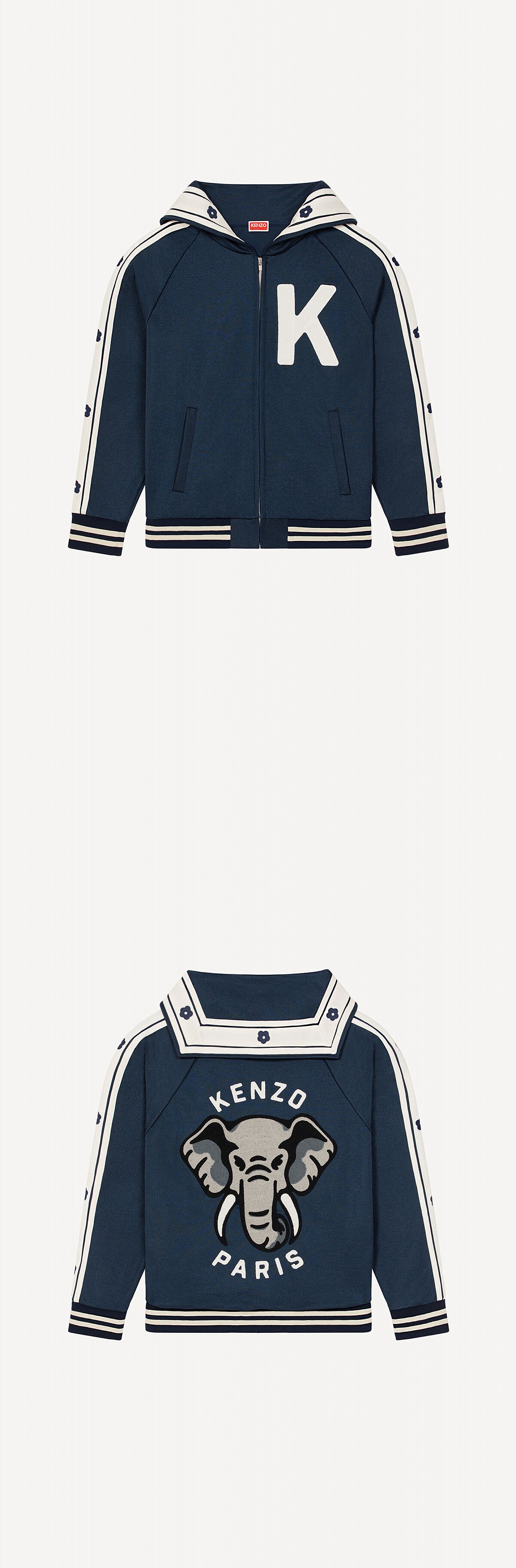 提及Kenzo,10個會有11個記得標誌性的老虎頭,然而,Nigo卻在2023春夏系列加入了大象的元素,為什麼是大象呢?其實不只是老虎,大象也是品牌創辦人高田賢三先生很喜歡的動物,大象脾氣淡然、記憶力超群,Nigo也覺得很像高田賢三先生本人,遂以大象的圖樣致敬前輩。