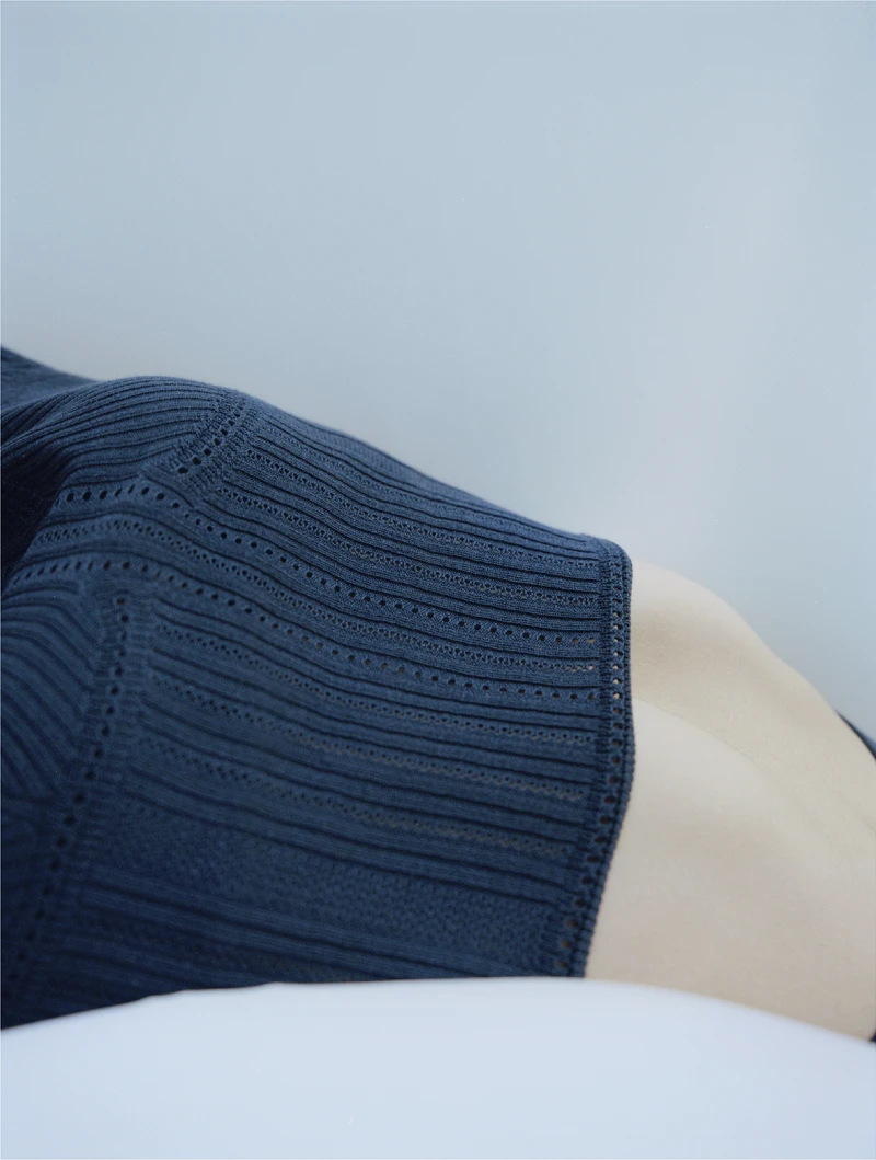 針織面料也是Mame Kurogouchi聯名一大強項,尤其針對春夏/秋冬分別打造出透氣與保暖材質。此次有一件式的洋裝——桃心領口線條,加上A字裙的輪廓,呈現出撩人的沙漏型曲線。