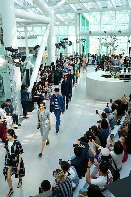 位於台南美術二館頂樓的南美春室The POOL堪稱全台最有氣質的咖啡館,充滿文藝氣息的 agnè s b 選擇在這裡辦秀,無疑是最美的結合,明亮的天光自玻璃屋頂灑落,簡潔純淨的空間更顯優雅知性,襯上 agnè s b 標誌性設計,在美好春日午後,想像一場宜人的小旅行。