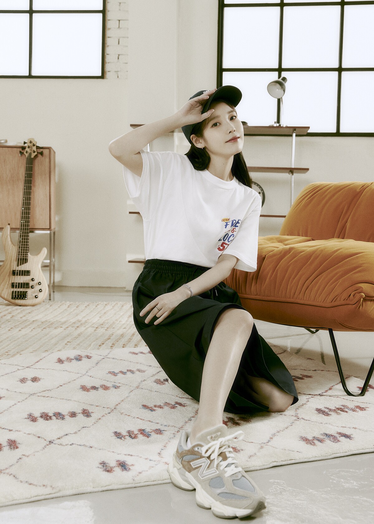 在潮流界盛傳一句話,想要知道最時髦的球鞋流行看NB就對了!今年隨著Y2K持續延燒,New Balance重新詮釋經典 99X 系列鞋款的熟悉元素,將「NB 9060」融合充滿未來科技感的 Y2K 風格,麂皮與網面拼接設計、鞋側保留經典的N字Logo,一眼就被這雙復古老爹鞋征服!IU以簡約的白T搭配黑色長裙,穿上水藍與鋁灰雙色的NB 9060,再加上一頂棒球帽,就完成了充滿美式校園風的青春打扮,這麼簡單又好看怎能不學起來!