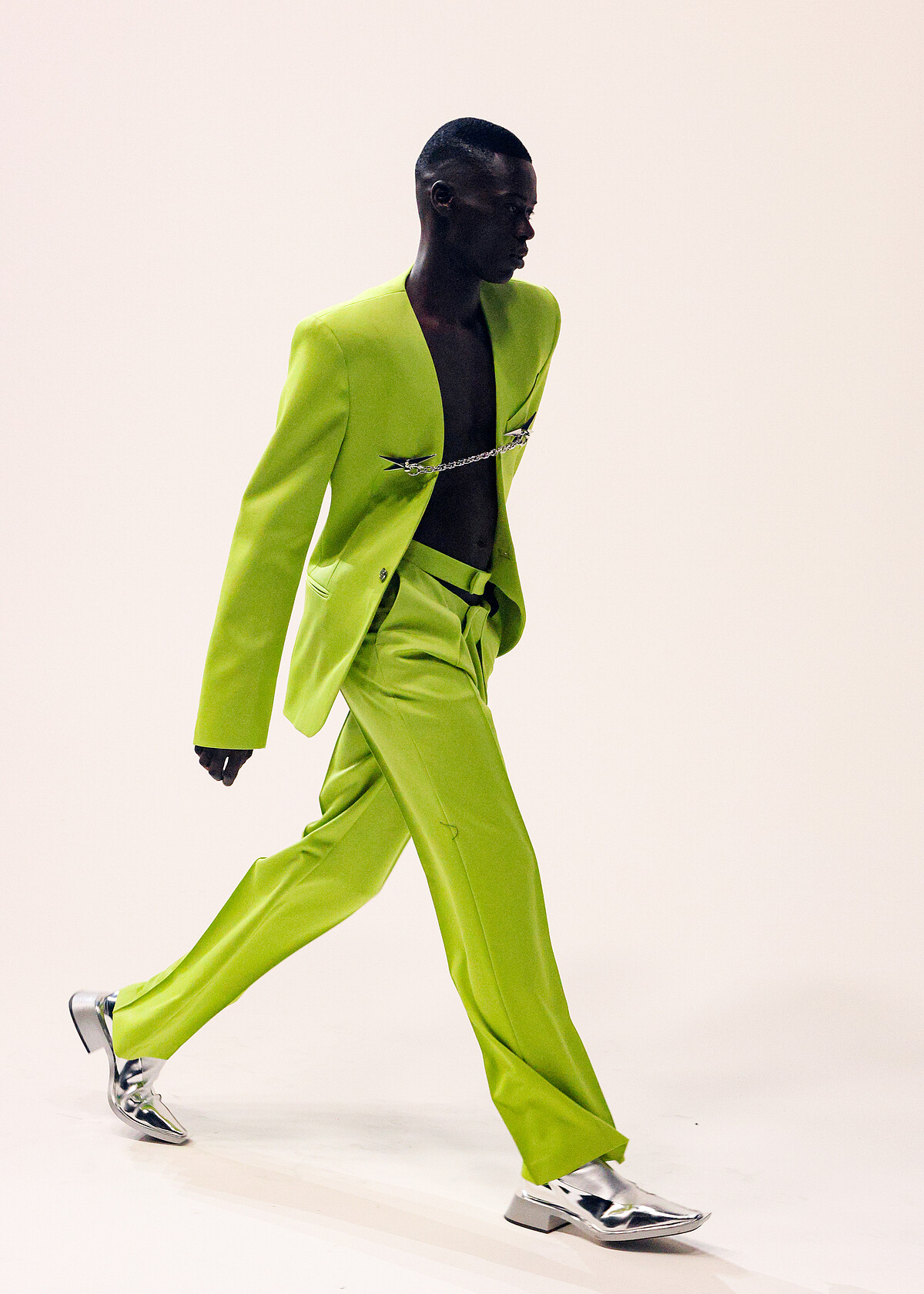 Mugler 的翻紅要歸功於創意總監 Casey Cadwallader,他很精準地將品牌經典輪廓和剪裁,將現代流行文化結合,讓這個本來幾乎被遺忘的品牌重拾光采,Mugler H&M 系列發表會上他也提到充滿文化靈魂的 Mugler,與H&M代表的自由、個人表達與大膽風格結合,正是這世界最完美的事。