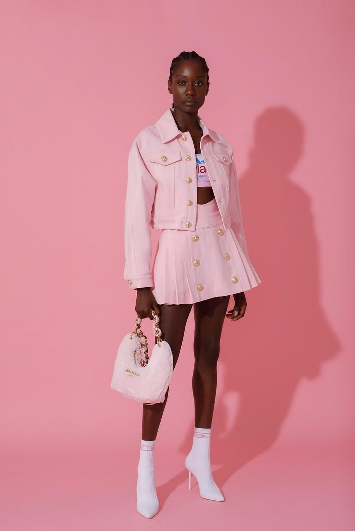 Balmain經典的套裝是出席正式活動、派對等甜美又不失優雅的不二之選,內搭一件Evian聯名Bra Top,降低過於正式的感覺,減齡效果大提升。用可持續性環保原料製成還能保有高訂感,果然只有這系列能達到。