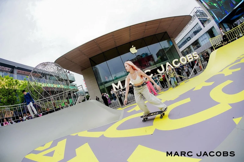 Marc Jacobs 經典的 Monogram圖紋搶眼極具識別度,在全世界多個景點都有其蹤跡,本次品牌更將此具有高級街頭感的現代精神帶往北京,走入新世代聚集之處三里屯太古里,即可見炫光黃 Marc Jacobs Monogram 與低調內斂的灰底搭配出有著撞色視覺的街頭滑板空間,令人耳目一新,展現屬於 Gen Z 世代的自信與反骨精神。