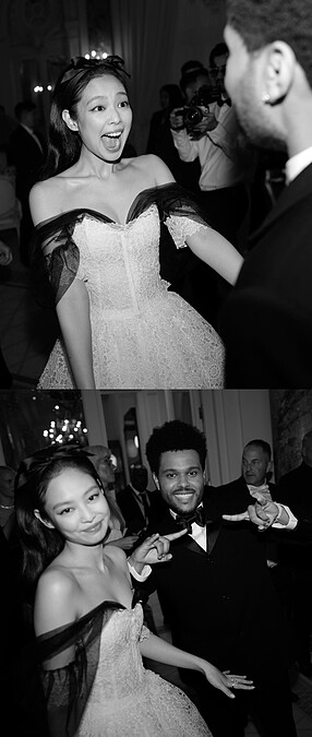 爾後的餐敘上,Jennie碰上同劇演員了The Weekend,驚喜表情實在太可愛!