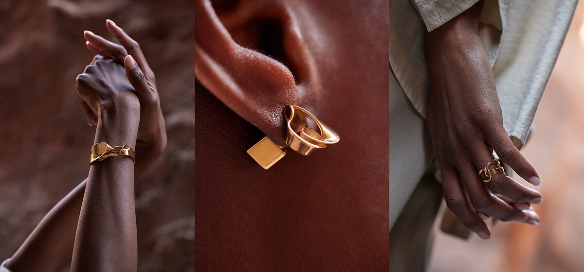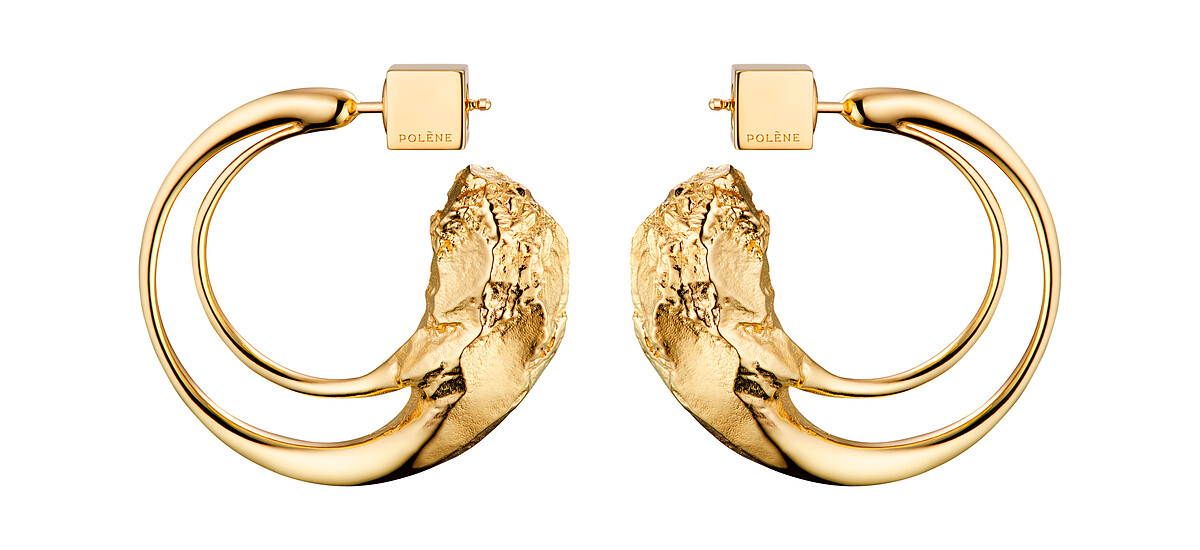 延續品牌包包從大自然擷取設計靈感的精神,Polène的飾品以同樣的思維來發想,首波推出兩大系列,分別以山巒與海水的紋理作為設計重點,全系列飾品皆以100%銅質、24K金鍍金材質打造,並囊括耳環、項鍊與手環等品項。