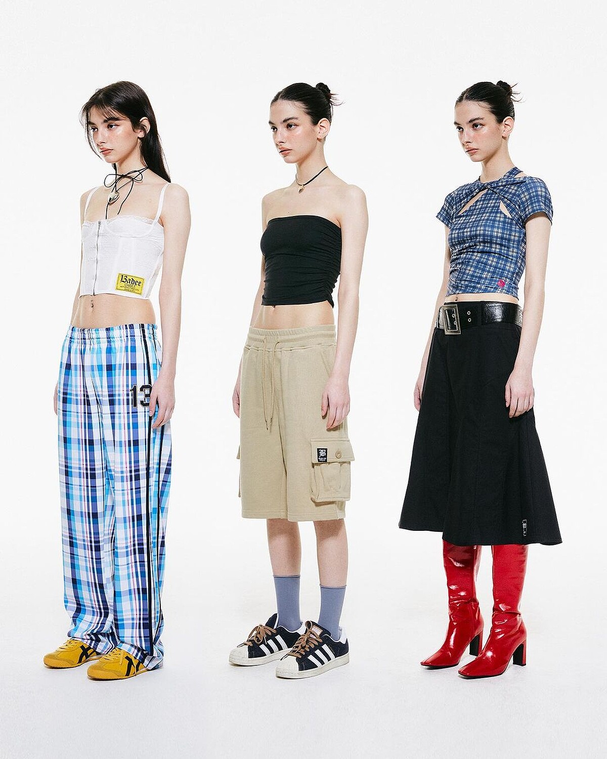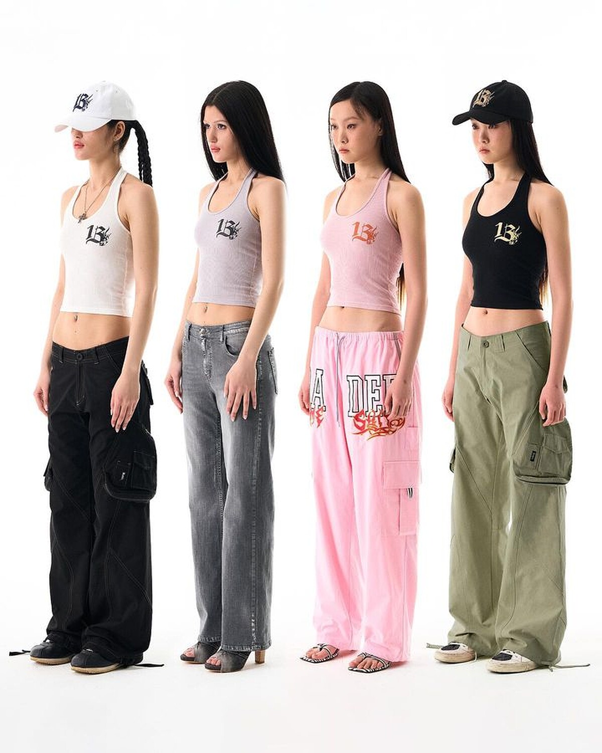 BADEE的下身單品崇尚Y2K的低腰準則,幾乎每一款牛仔褲、休閒褲、迷你裙都是掛在骨盆上的極低腰設計,融合工裝、運動風格。