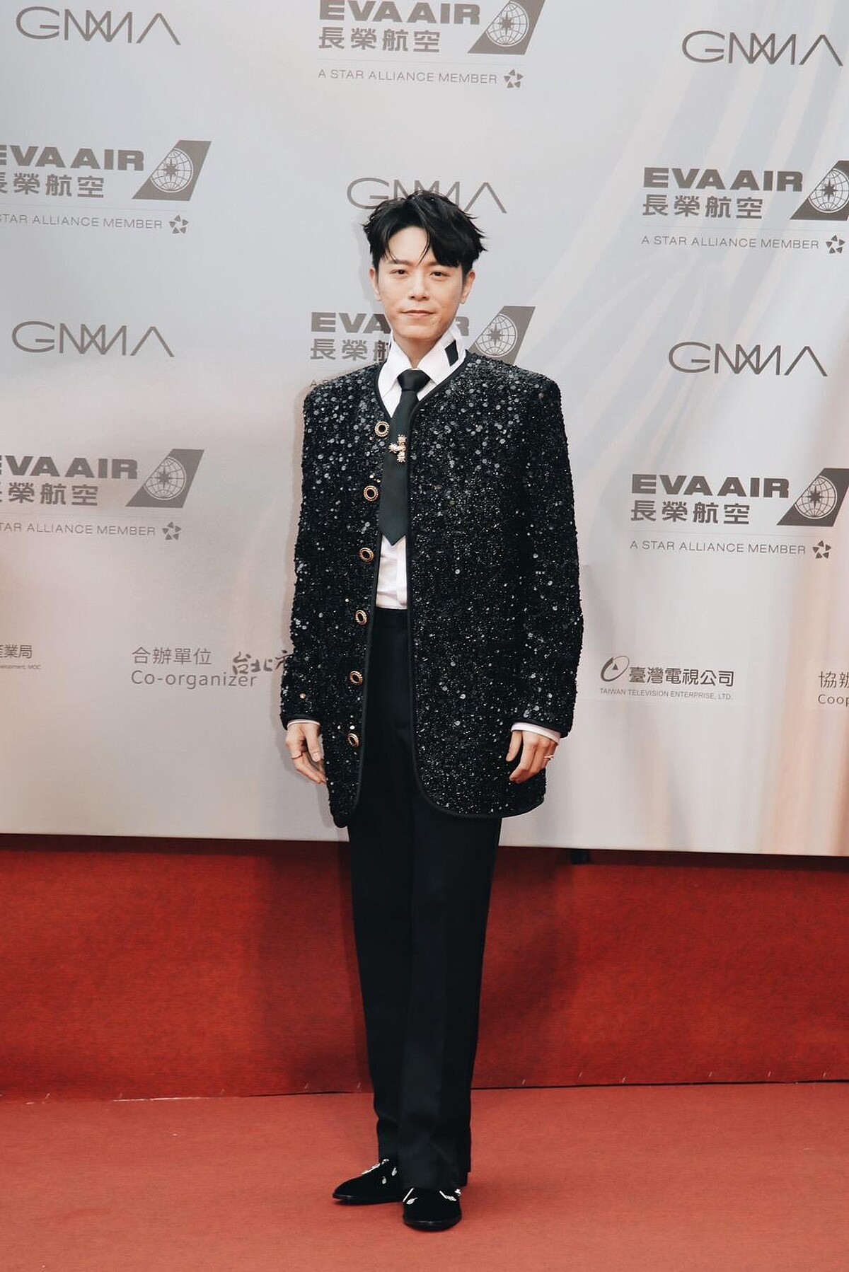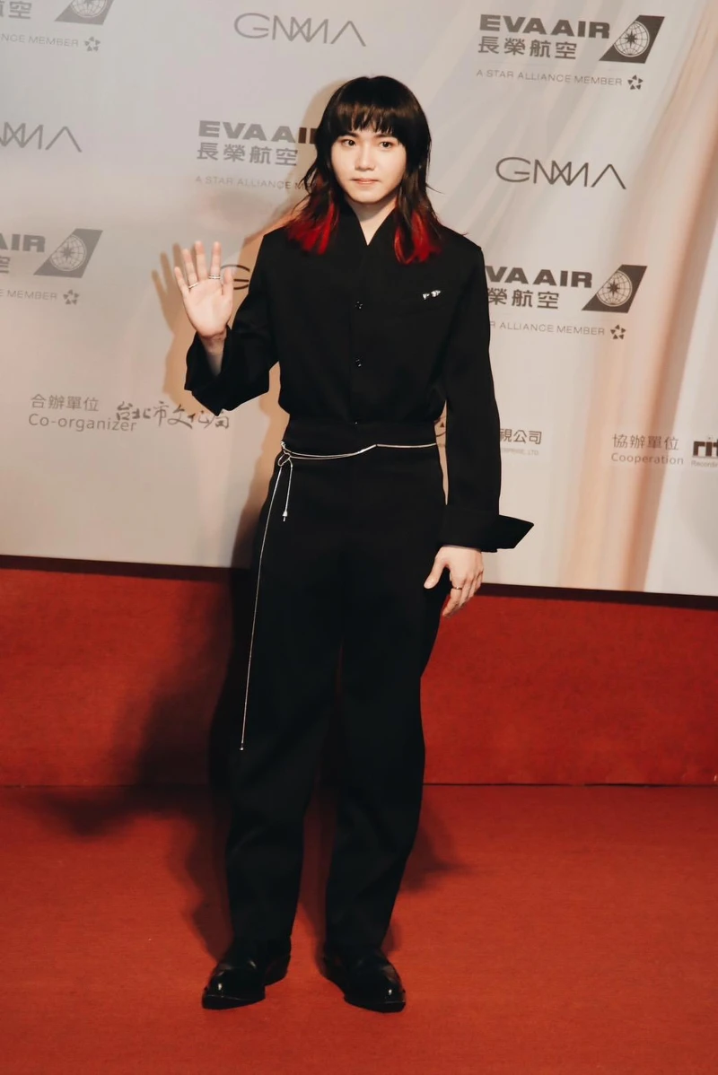 持修入圍本屆最佳單曲製作人獎,他穿著Bottega Veneta的黑色修身套裝搭配Boucheron 寶詩龍的胸針,並以Jack de Boucheron系列項鍊作為腰帶做為造型亮點,反摺袖口率性不失莊重,髮尾紅色挑染也很有記憶點。