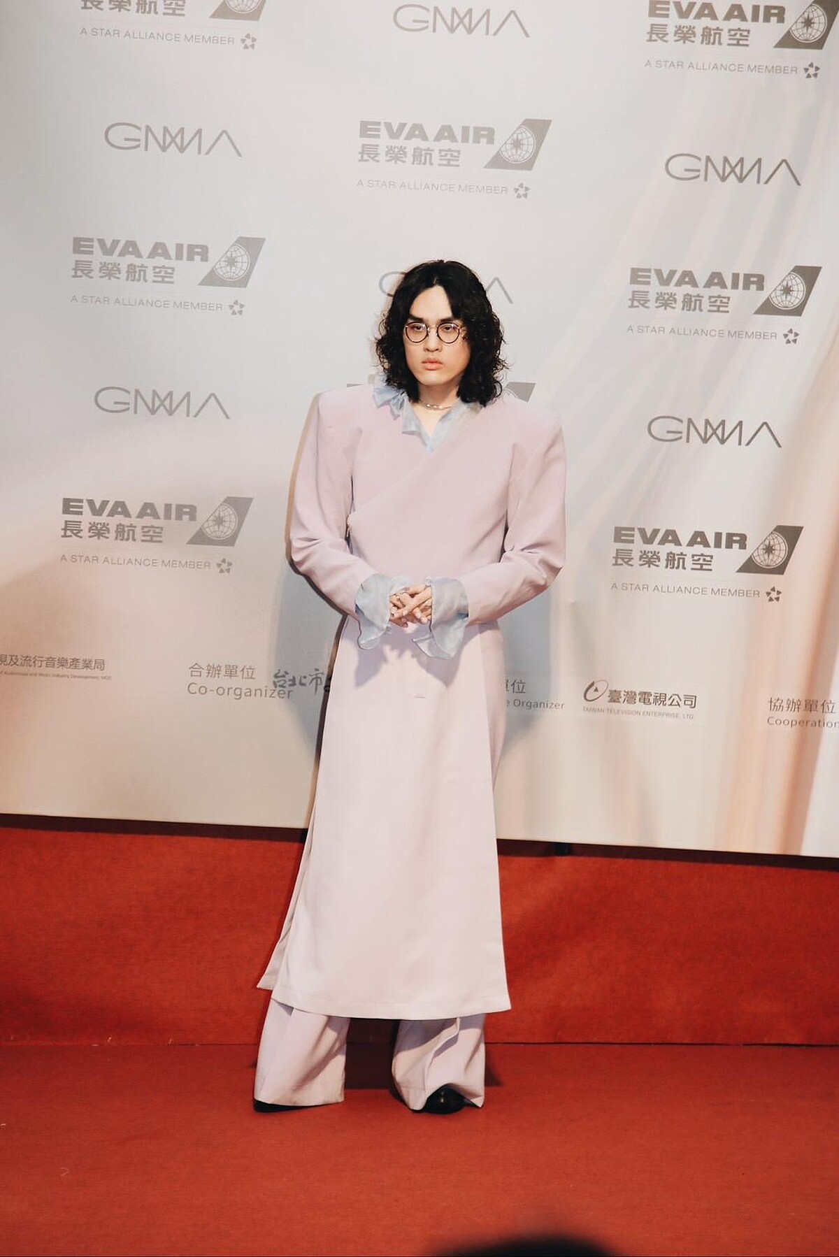 入圍最佳華語男歌手獎、最佳新人獎的怪物及新人鶴 The Crane,在今天穿上了紅毯上男星少見的淺藕色登場,頗有氣勢!