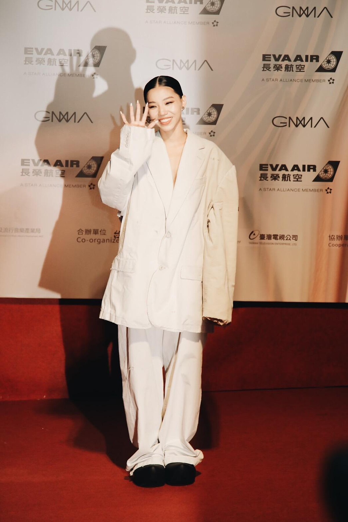 曾經以〈墊起腳尖愛〉創下6千萬點閱的洪佩瑜,在今年一舉入圍年度歌曲、年度專輯、最佳華語專輯、最佳華語女歌手、歌手、最佳新人等多個獎項,紅毯穿搭也非常有自己的風格,以一身Oversized的白色西裝套裝走上星光紅毯,展現了女歌手在今晚少見的帥氣穿搭!