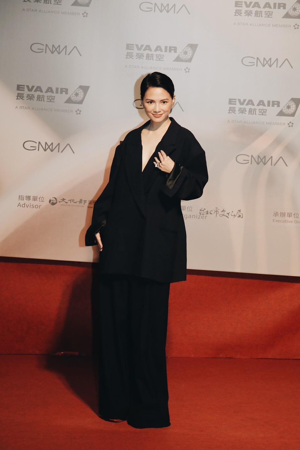 睽違20年重返歌壇的李心潔受邀擔任本屆金曲獎頒獎人,保養得宜的她以一身寬鬆帥氣的黑色西裝造型登場看來氣勢十足,胸口的深V設計為這套紅毯戰袍添加了小性感。