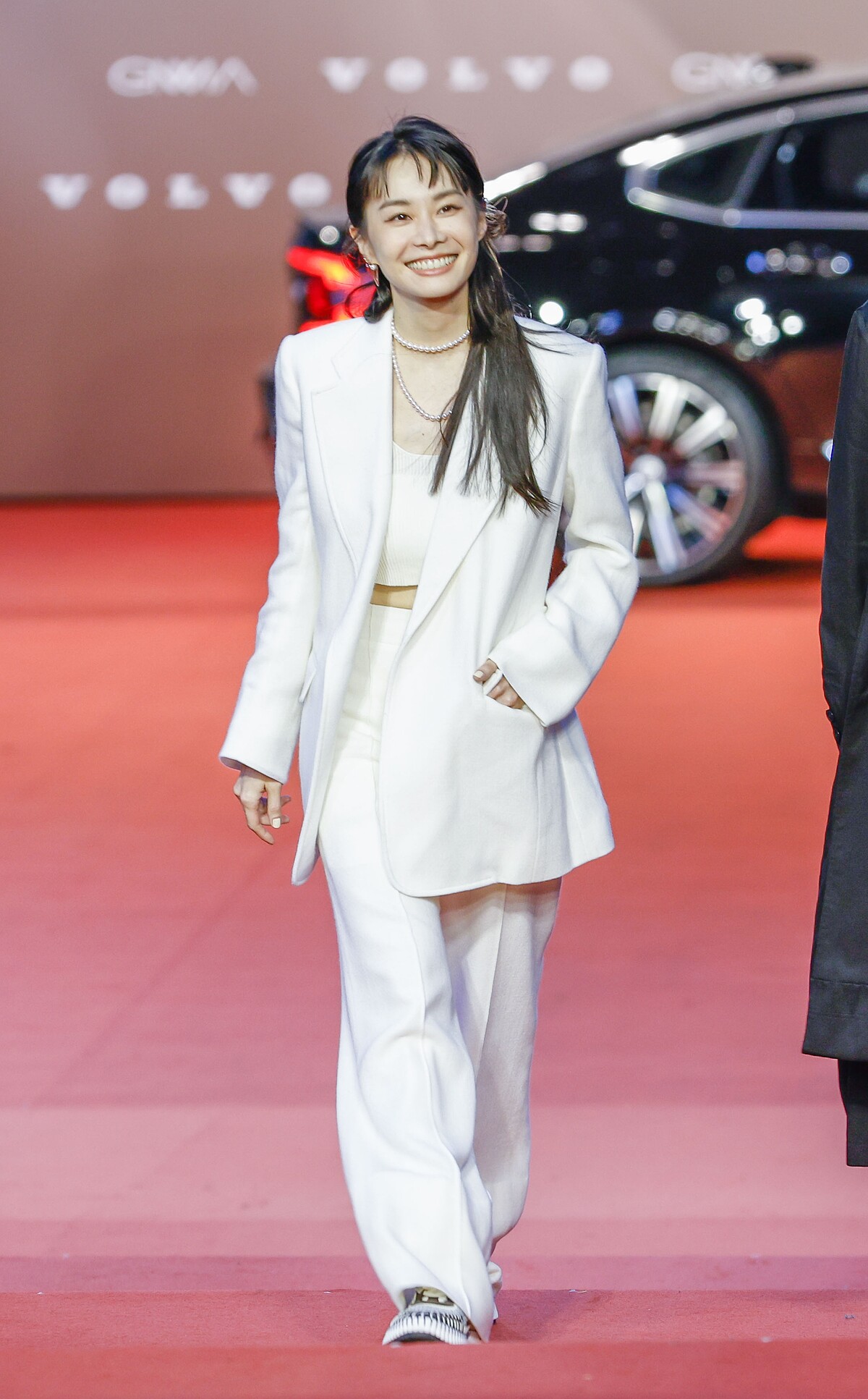 鄭宜農以純白色的Chloé成套西裝現身紅毯,簡約搭配MIKIMOTO珍珠珠寶作品,襯托她獨特脫俗、中性的氣質。