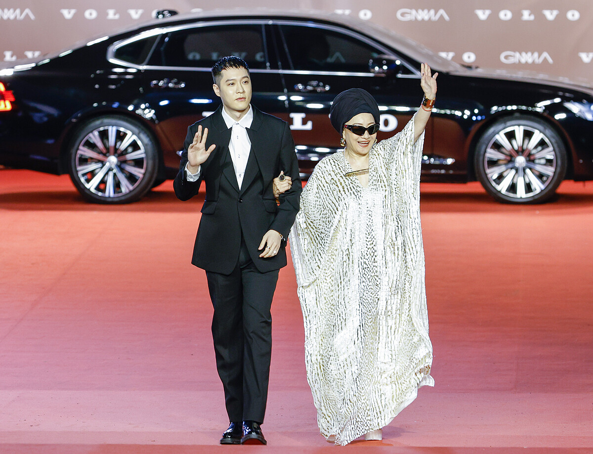 第一次在紅毯上合體的最強母子檔比莉與周湯豪壓軸登場,今年也是比莉出道55年來第一次踏上金曲獎的紅毯,一身前衛銀色系的長洋裝,搭配頭巾墨鏡,時髦依舊;周湯豪以一身黑色正裝登場也是帥度滿滿!