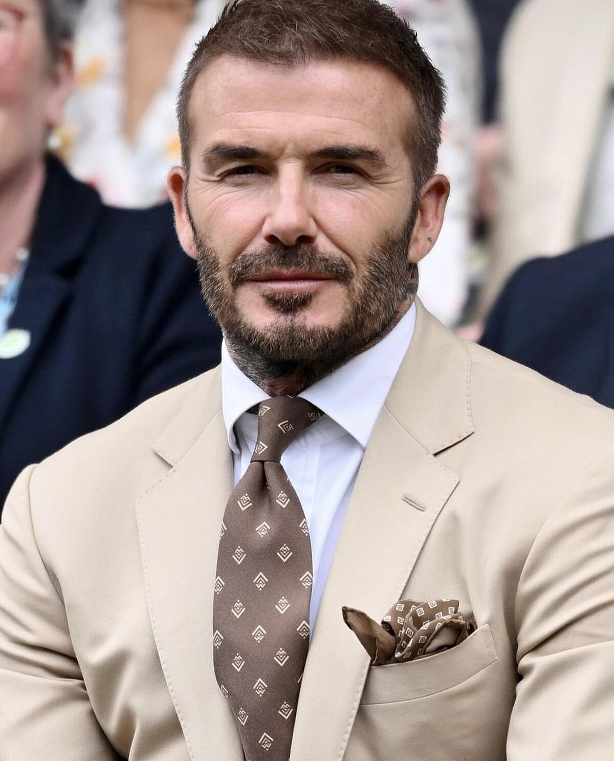 開賽第三天,大衛貝克漢現身在觀眾席皇室包廂,他穿著淺卡其色的Ralph Lauren紫標系列西裝與白色襯衫長褲,手上配戴Tudor Black Bay 58腕錶,綠色表面呼應溫網草地。