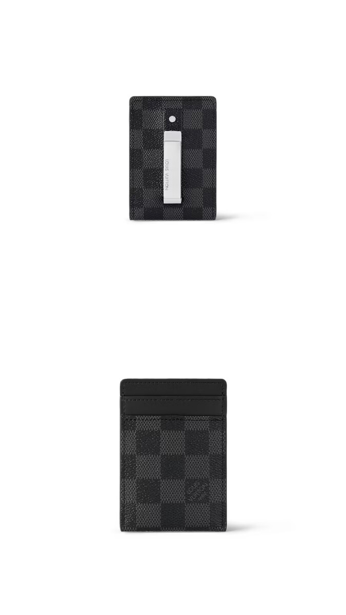 一面是鈔票夾,另一面是卡夾層,中間還有一個收納空間,並以LV的經典棋盤格圖樣製作。