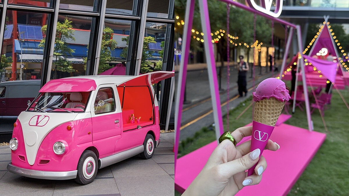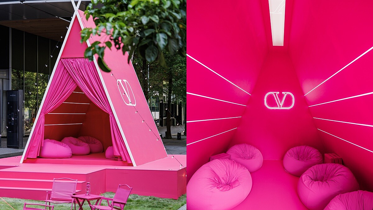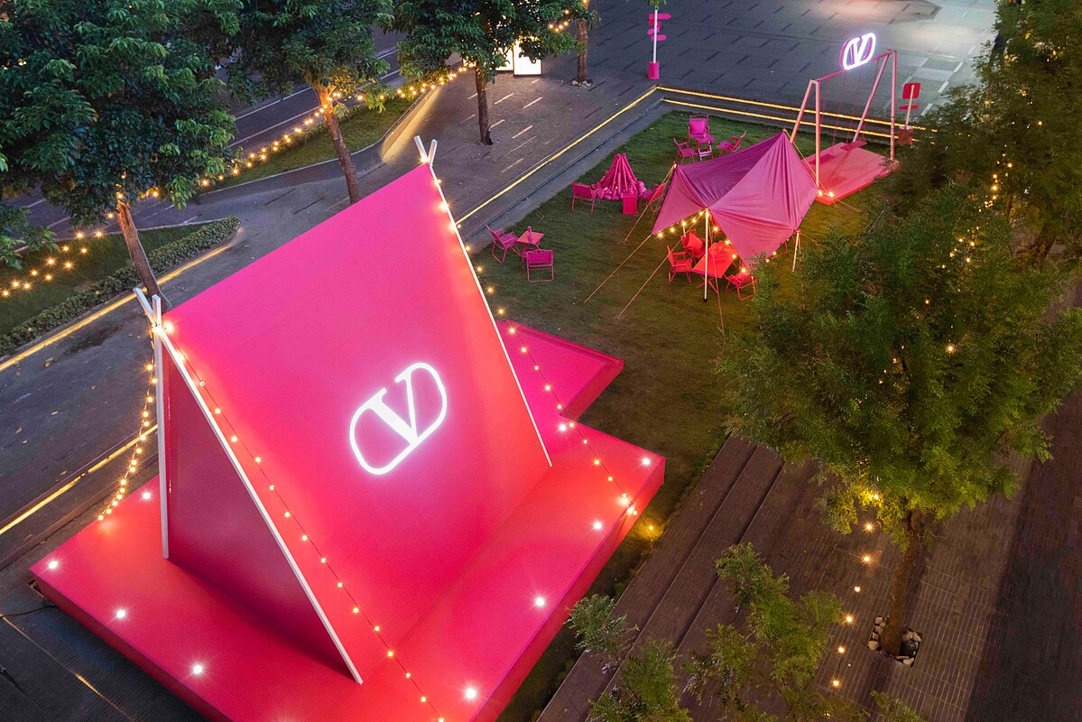 Valentino即日起至8月27日,於台北信義區微風南山戶外草皮推出《V 風粉夏 PINK PP 限定城市野營》活動。