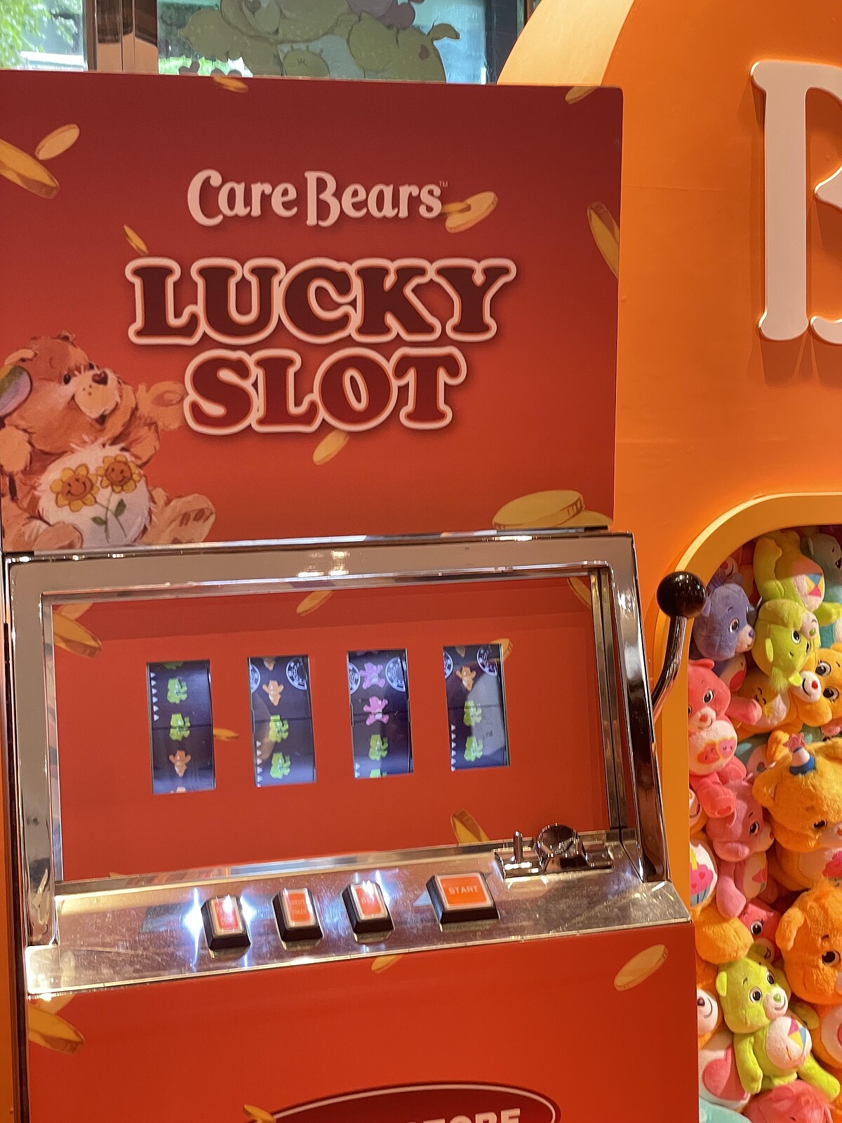 Care Bears快閃店內設置一台復古拉霸機台,消費滿2,000元即可獲得一枚金幣、遊玩一次,看一樣的熊熊數量有幾個,就能達到對應的獎項,保證有獎!