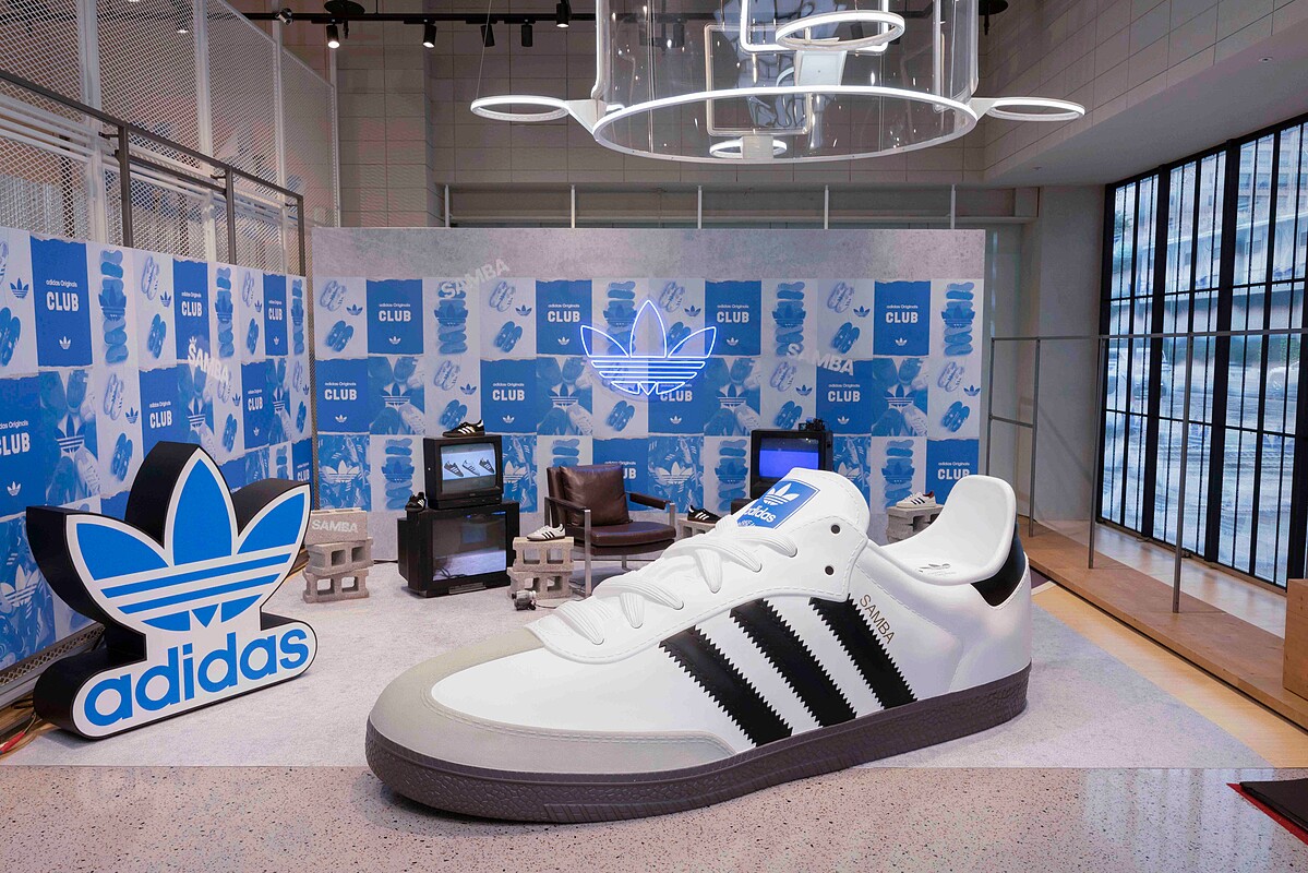 為慶祝adidas Originals T-TOE家族上市,特別將家族中最受歡迎的代表鞋款SAMBA,放大為超巨型的裝置,設置於信義香堤廣場,於週末期間限定快閃,現場佈置成一座街頭足球場,每個細節都很可愛,適合潮迷們在此擺拍。