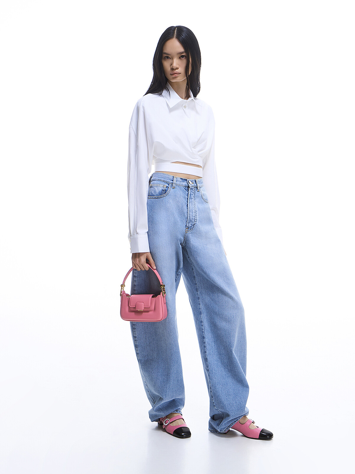 毛呢材質與浪漫粉色結合的肩背包設計也為你的七夕造型增添焦點,無論上班或是假日使用都適合。