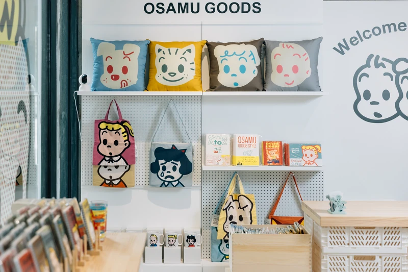 2023年暑假OSAMU GOODS在華山文創園區內打造為期三個月的官方快閃店,店內將會販售多款首度發售與台灣限定的周邊商品,而店門外玻璃落地牆面上也有大型的經典人物造型壁貼,帶大家一起重回日本昭和的大人感可愛世界。