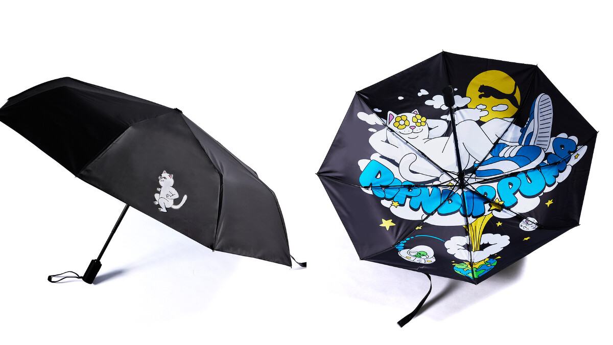 RIPNDIP x PUMA全系列單品於8月10日全球同步開賣,凡消費滿NT$5,000還可獲得 PUMA x RIPNDIP 限量聯名摺疊晴雨傘(限量)。