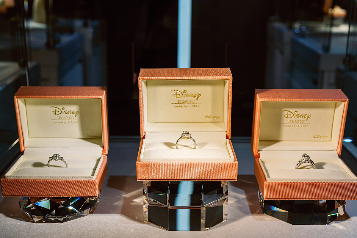 事實上,只要有意為自己或另一半打造「不撞款」的鑽戒、對戒或項鍊,都能向K.UNO免費預約與日籍設計師面對面討論的時間!只要挑選喜愛的迪士尼公主,或是米奇米妮、小熊維尼、冰雪奇緣、星際寶貝等角色,並告知具有意義的紀念日、數字或英文名字,就能透過設計師的巧思,將這些難得的心意化為實體戒指、項鍊貼身配戴收藏。不過品牌也提醒,由於迪士尼授權規範相當嚴謹,分屬不同動畫的角色無法「同框出現」,但只要顧客給出愈多的想法,設計師就愈能幫顧客設計出符合心中期待的夢幻飾品,相當歡迎民眾有機會能到門市現場,親身感受K.UNO獨特的客製細節與精神。