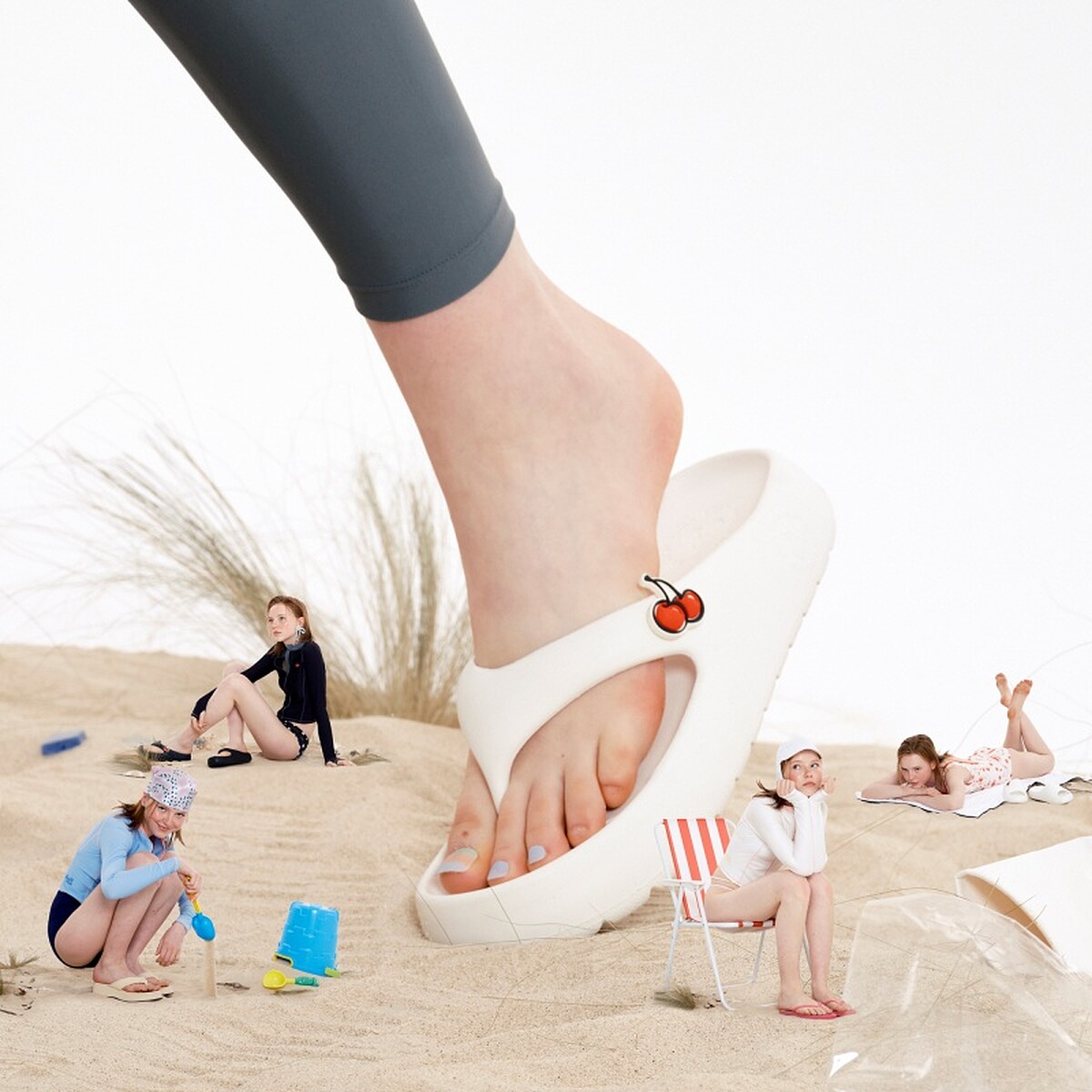 喜歡韓國風格的女孩一定知道的KIRSH,在今年推出沙灘系列,其中也包括人字拖鞋款,可愛的櫻桃標誌在鞋身點綴,絕對是甜妹必備,另外也有襪套+人字拖的造型,也是搭配的創意參考。