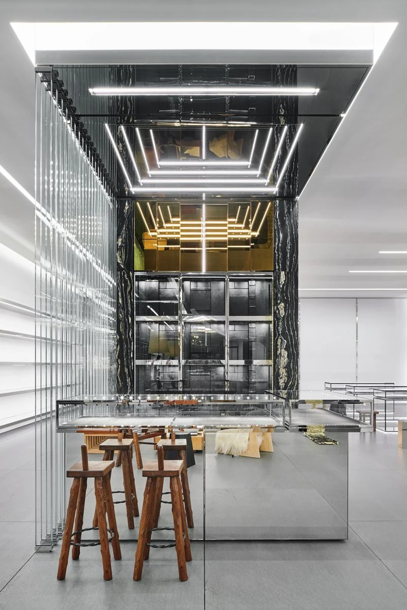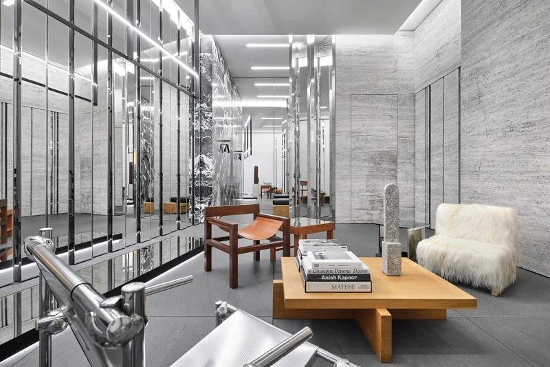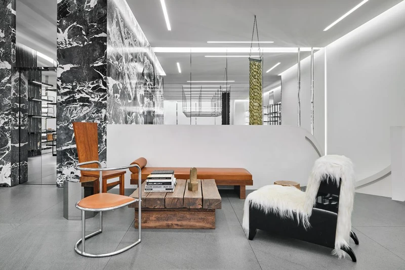 熟稔藝術領域的Hedi Slimane,宛如把CELINE精品店當作一間間美術館、藝廊在構思店內的陳列與擺設。店內每個角落隨處可見藝術家們的繪畫和雕塑,絕美的木製與皮質家具相得益彰。