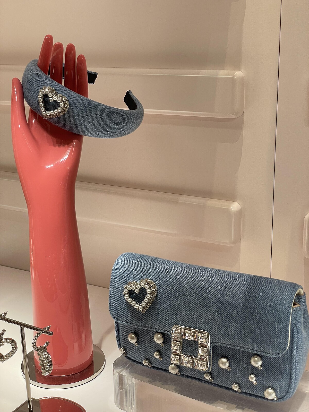 Roger Vivier本季將爽朗的淺丹寧面料結合珍珠與水鑽妝點,加諸於鞋款、手袋與配件上,為優雅單品增添精緻休閒與俏皮的氣息,每件作品的水洗布料質感都會稍有不同,帶來復古的感受。